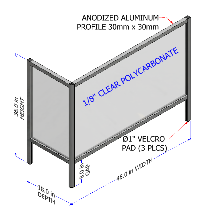 Protect your employees & customers with this sensible, attactive cost effective protective shield. Cost without panels including shipping anywhere in the continental US is $190.00. Cost with panels including shipping and assembly within 45 miles of Rochester, NY is $260. Click here for an order form.DESIGN AM060520-2 |