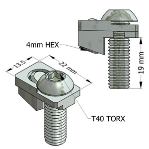 - Angled set screw much easier to access than fasteners with screws deep in the t-slot