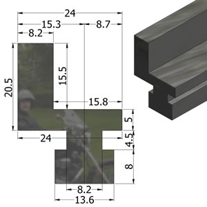| - Alternatively c'bore for screw & mill clearance for square nut to lock in position |