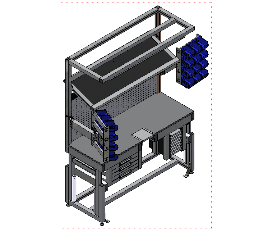 Workstation With Parts Shelves For Parts Bins